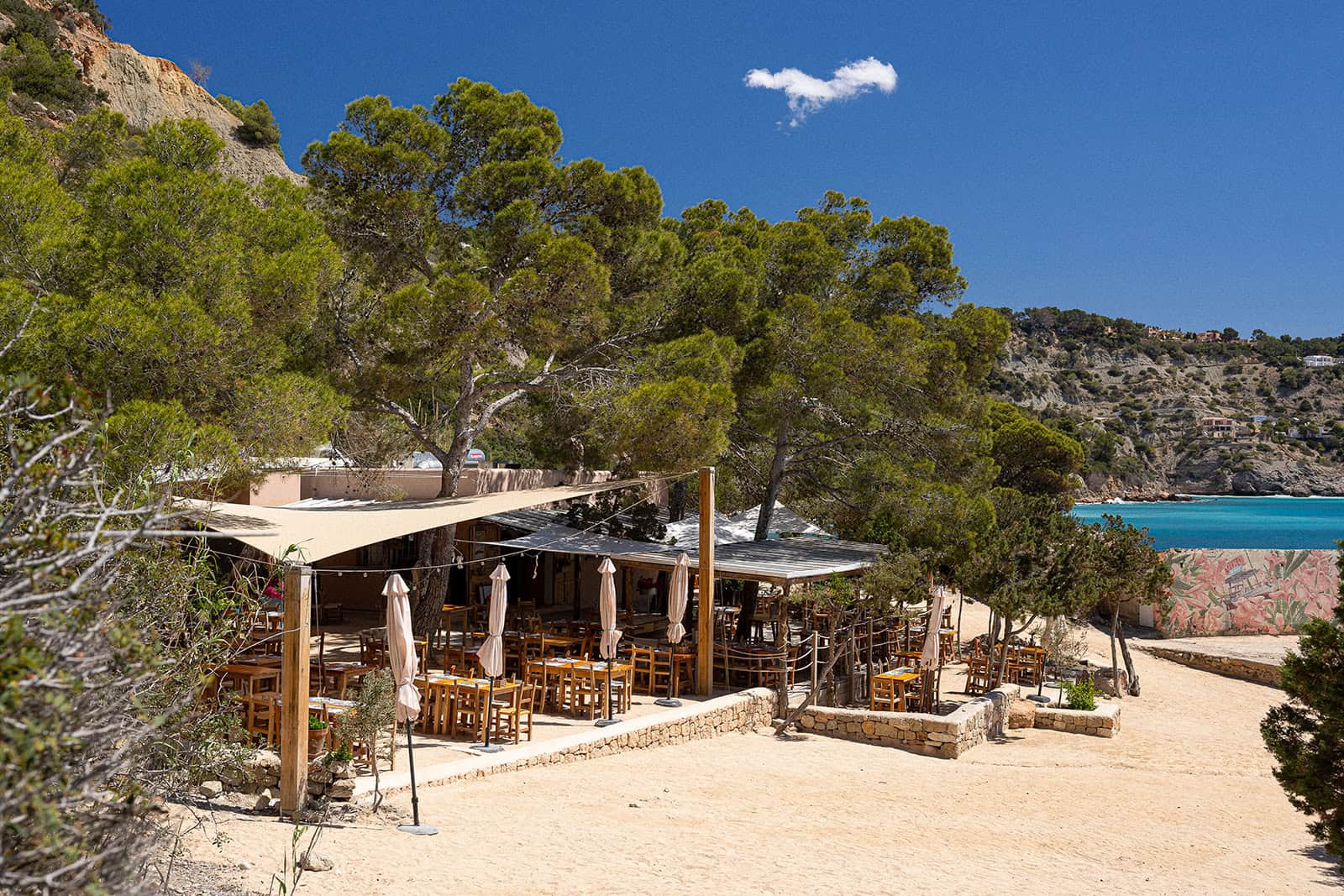 Tucked away on a small, sandy cove near San Antonio, Cala Gracioneta is a charming and relaxed beach restaurant. With its laid-back vibe, friendly service, and Mediterranean menu, it’s ideal for leisurely lunches by the sea.
