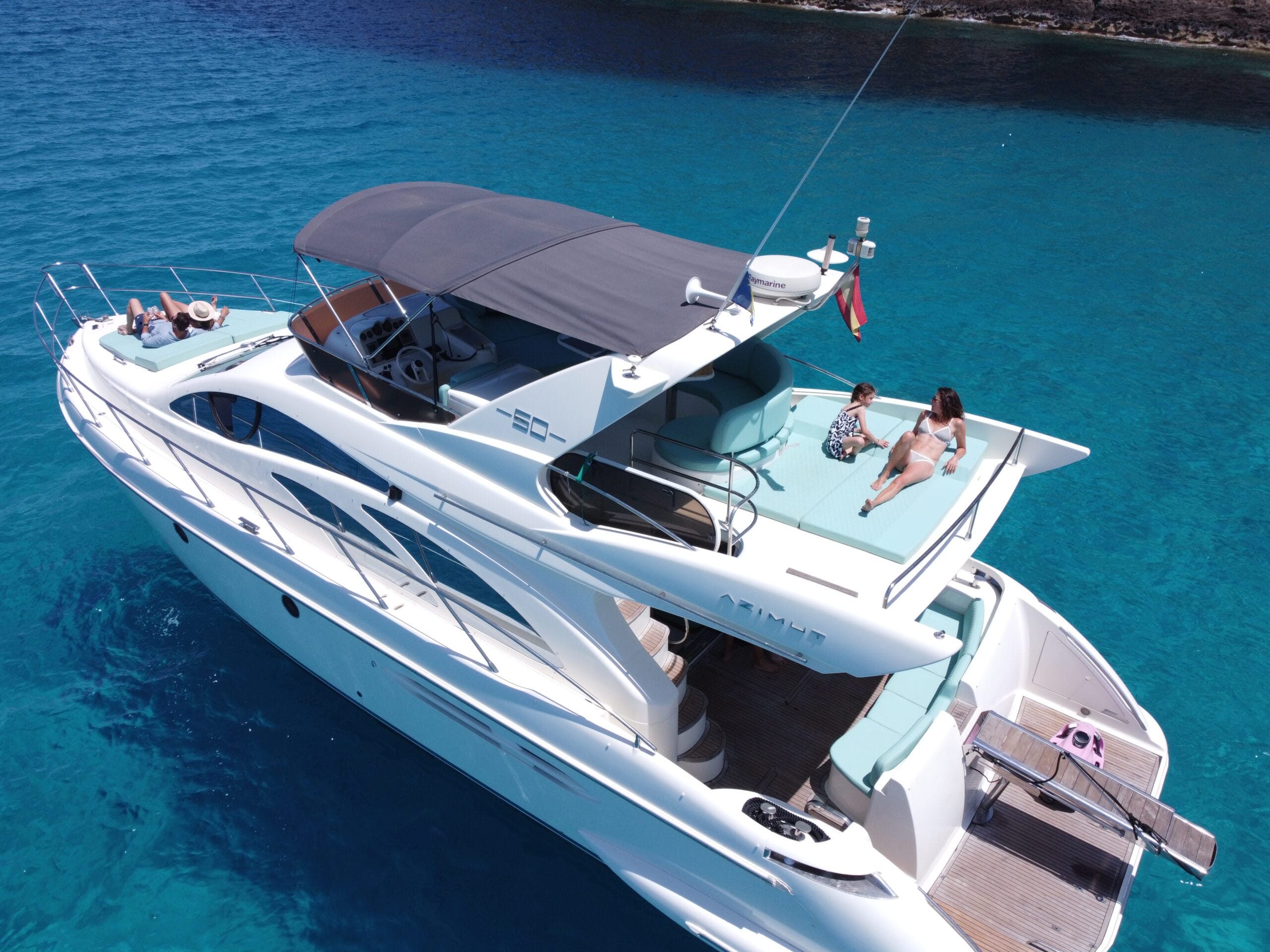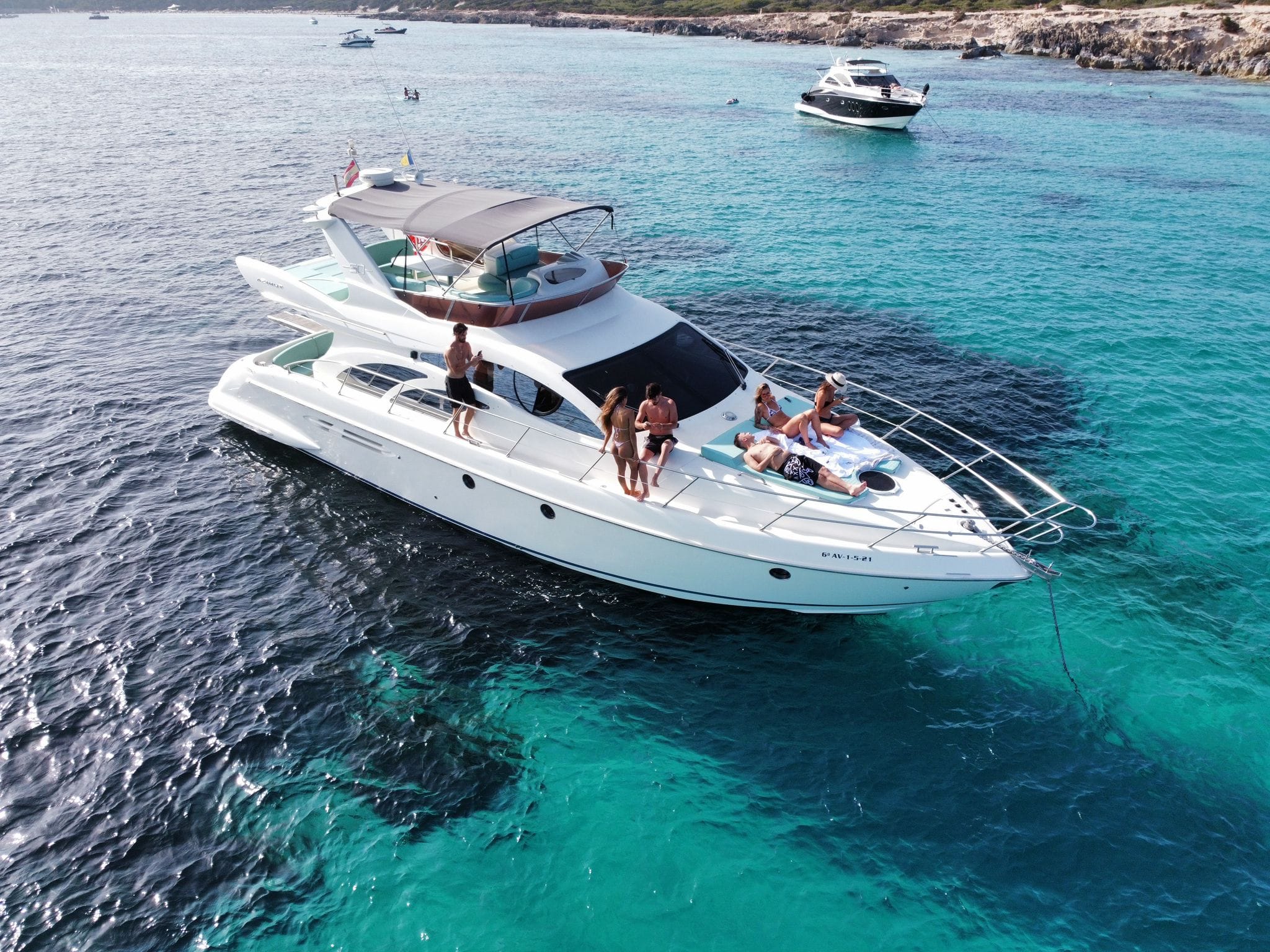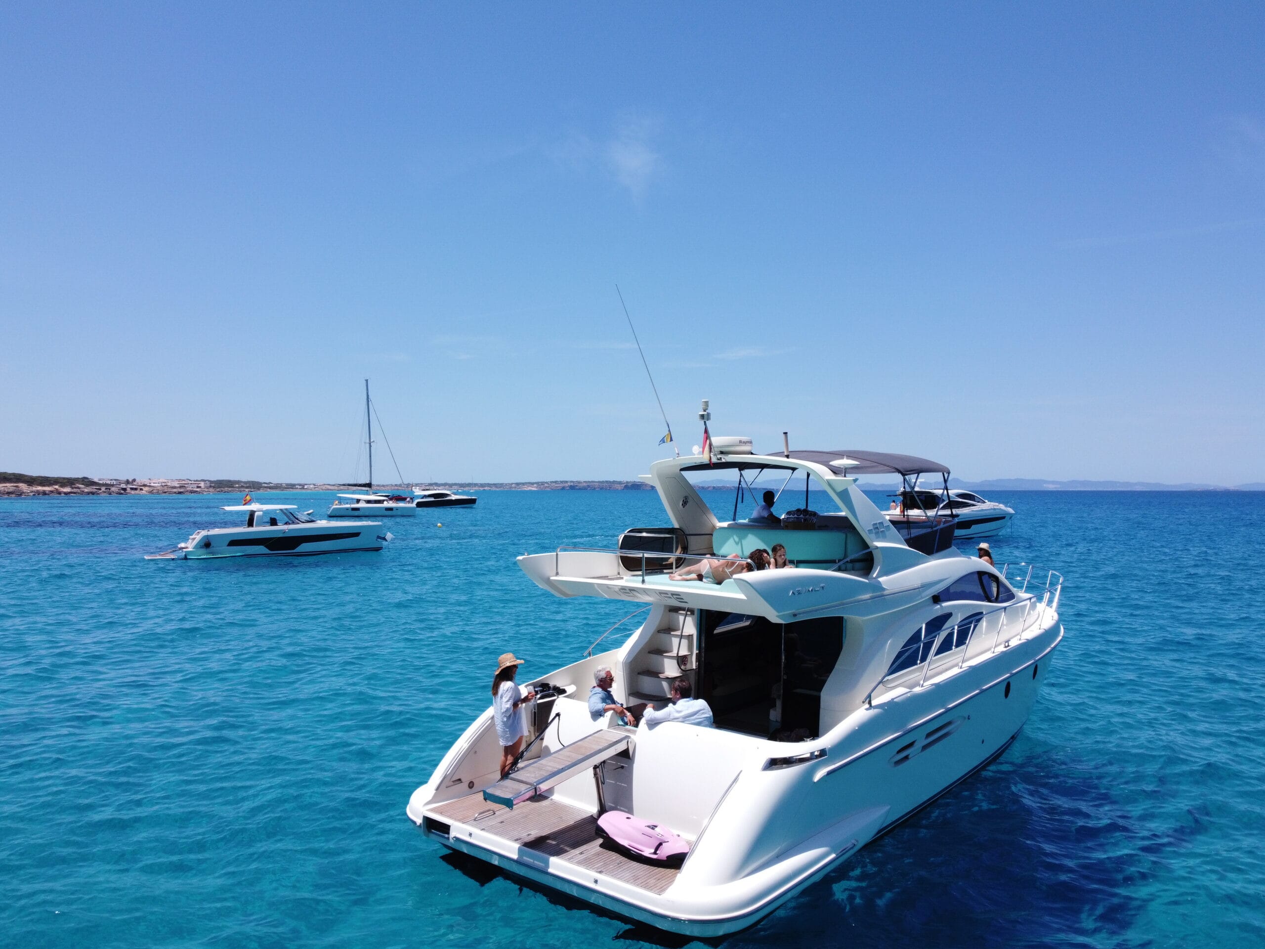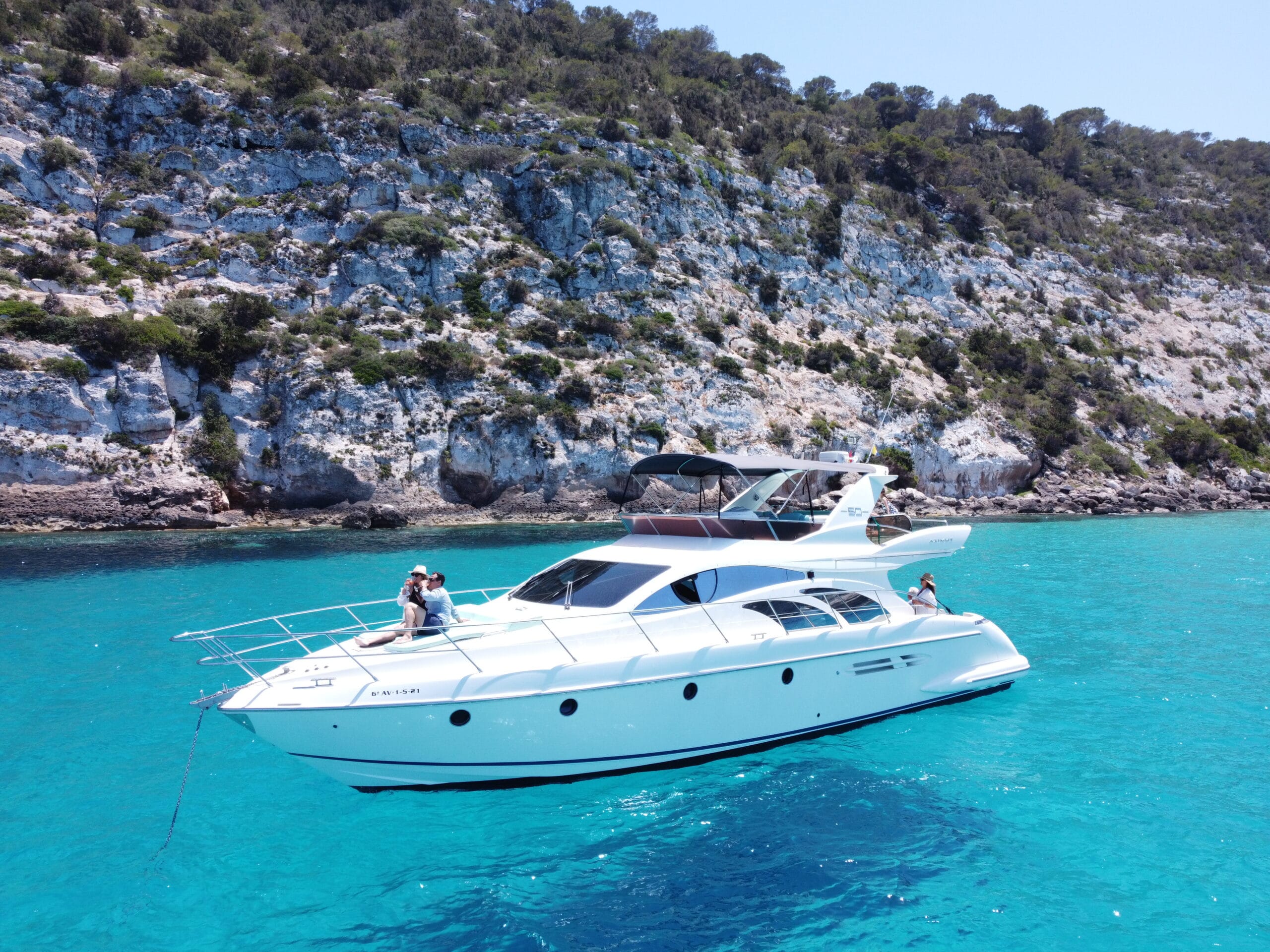 Experience Ibiza aboard the Azimut 50—a refined blend of performance and comfort, featuring sleek design, inviting lounges, and a spacious flybridge. Perfect for soaking up the sun, exploring hidden coves, and enjoying the island’s coast in true Mediterranean style.