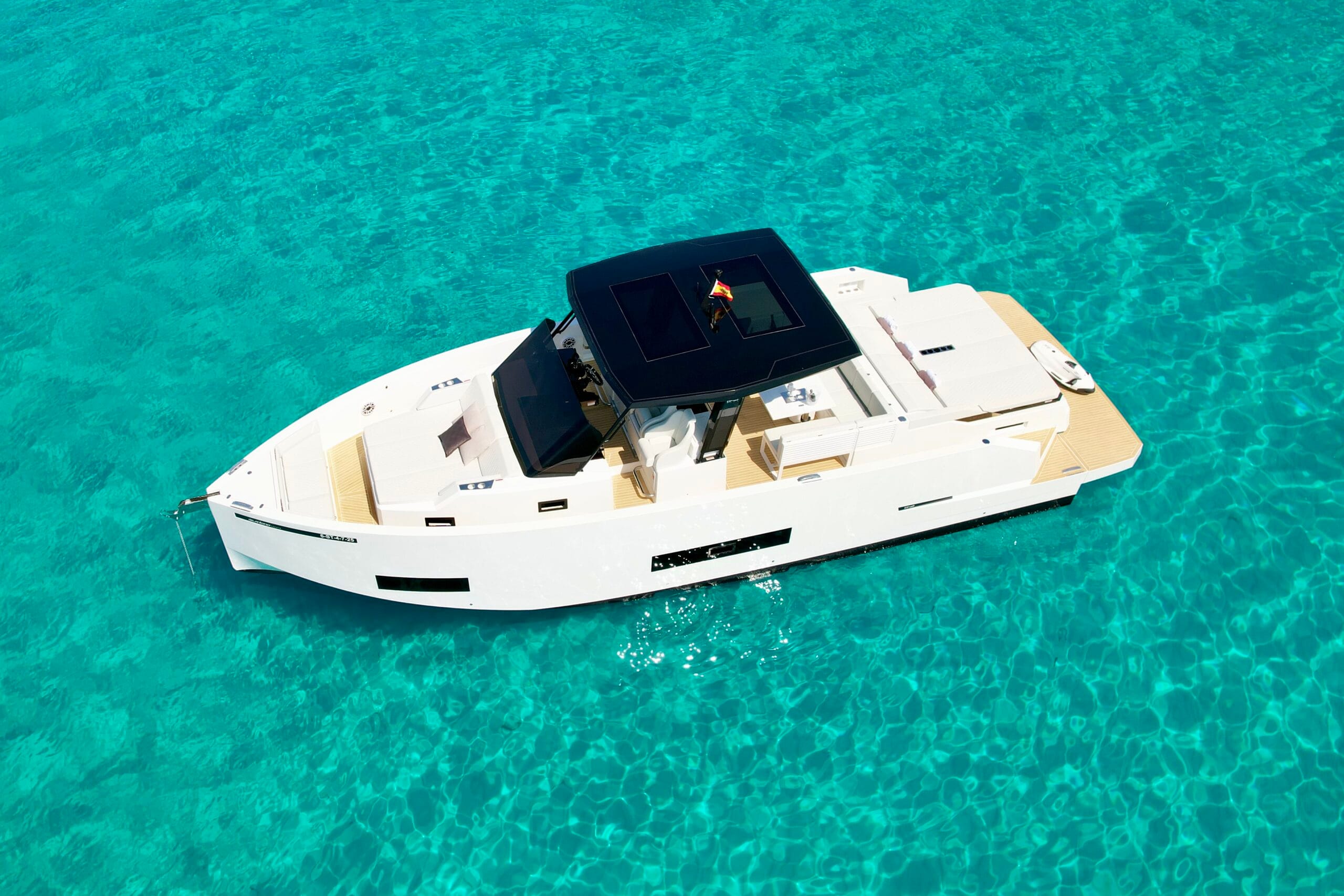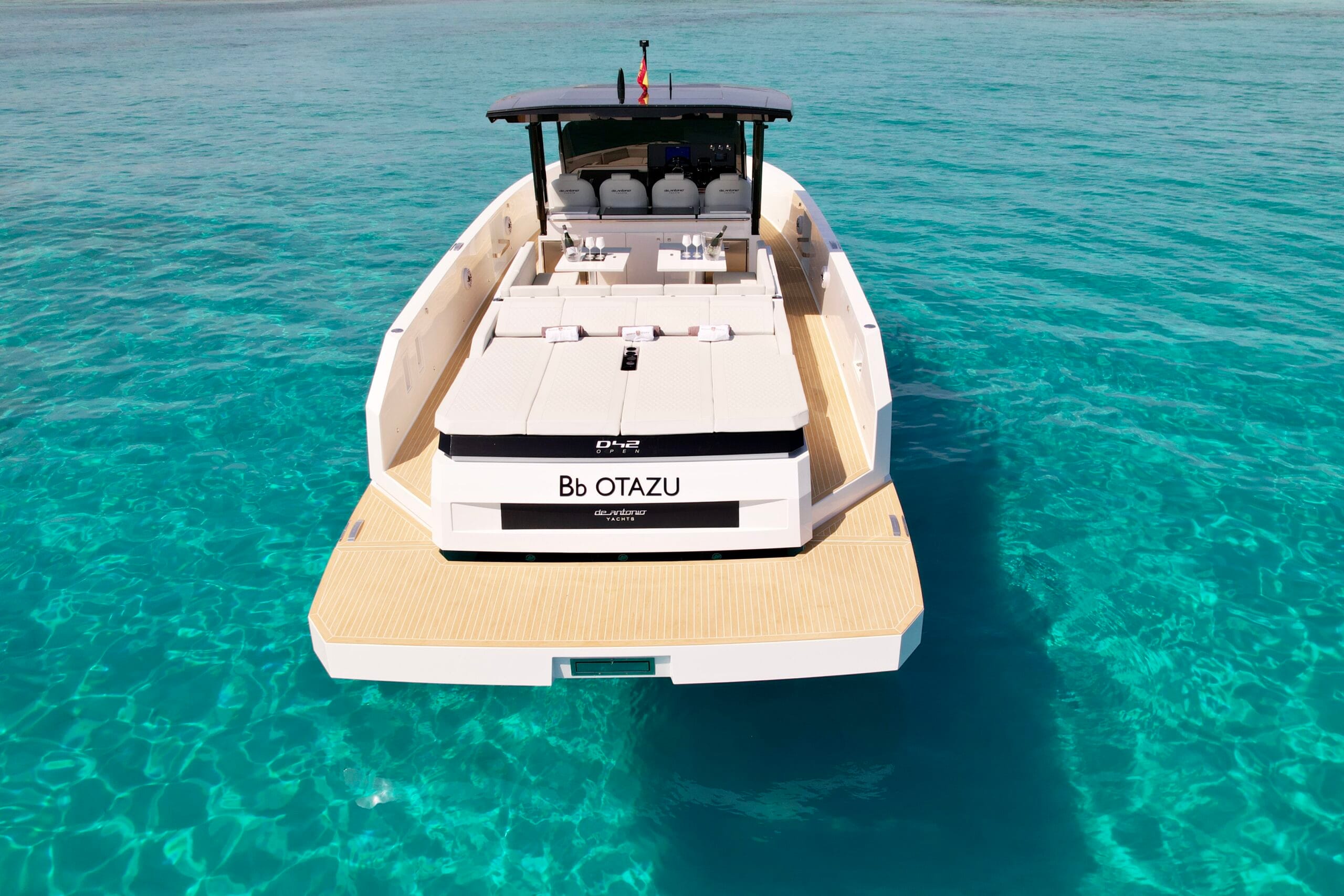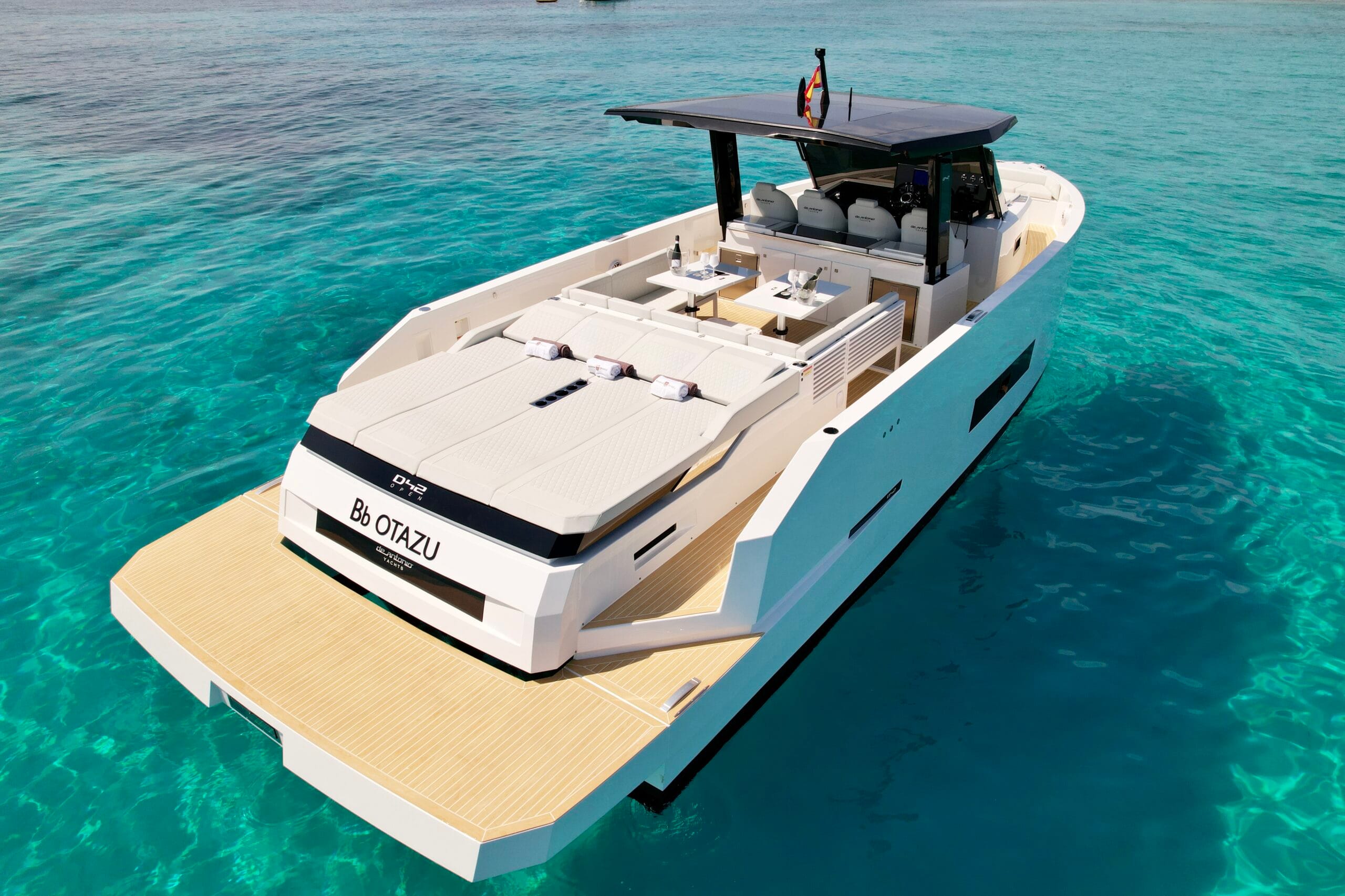 De Antonio 42 delivers a refined, contemporary boating experience with wide-open deck area and plenty of room to move. Its balanced performance and clean design make it a great choice for longer coastal runs, leisurely afternoons at anchor, and effortless days shared with friends on Ibiza’s coastline.
