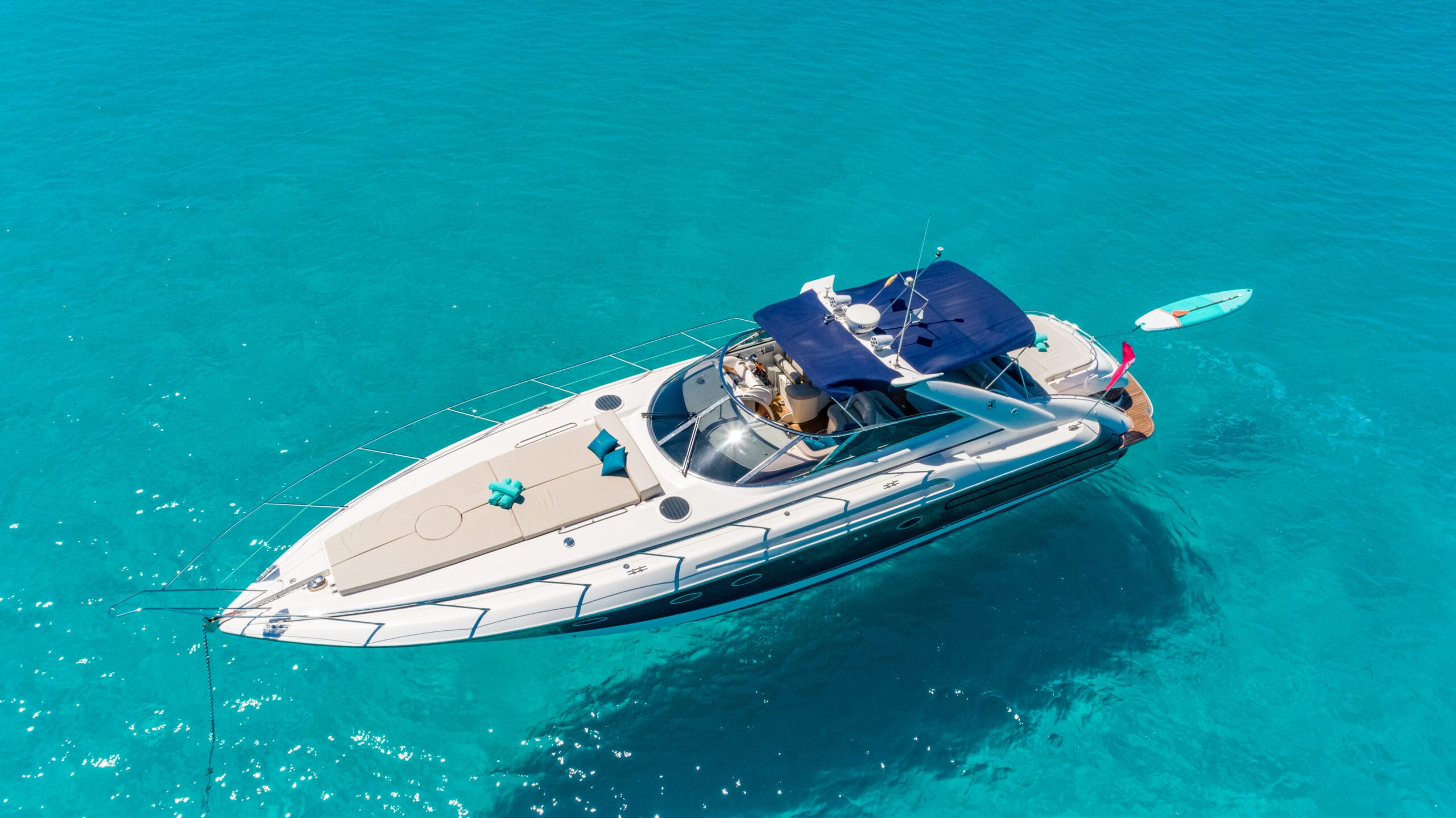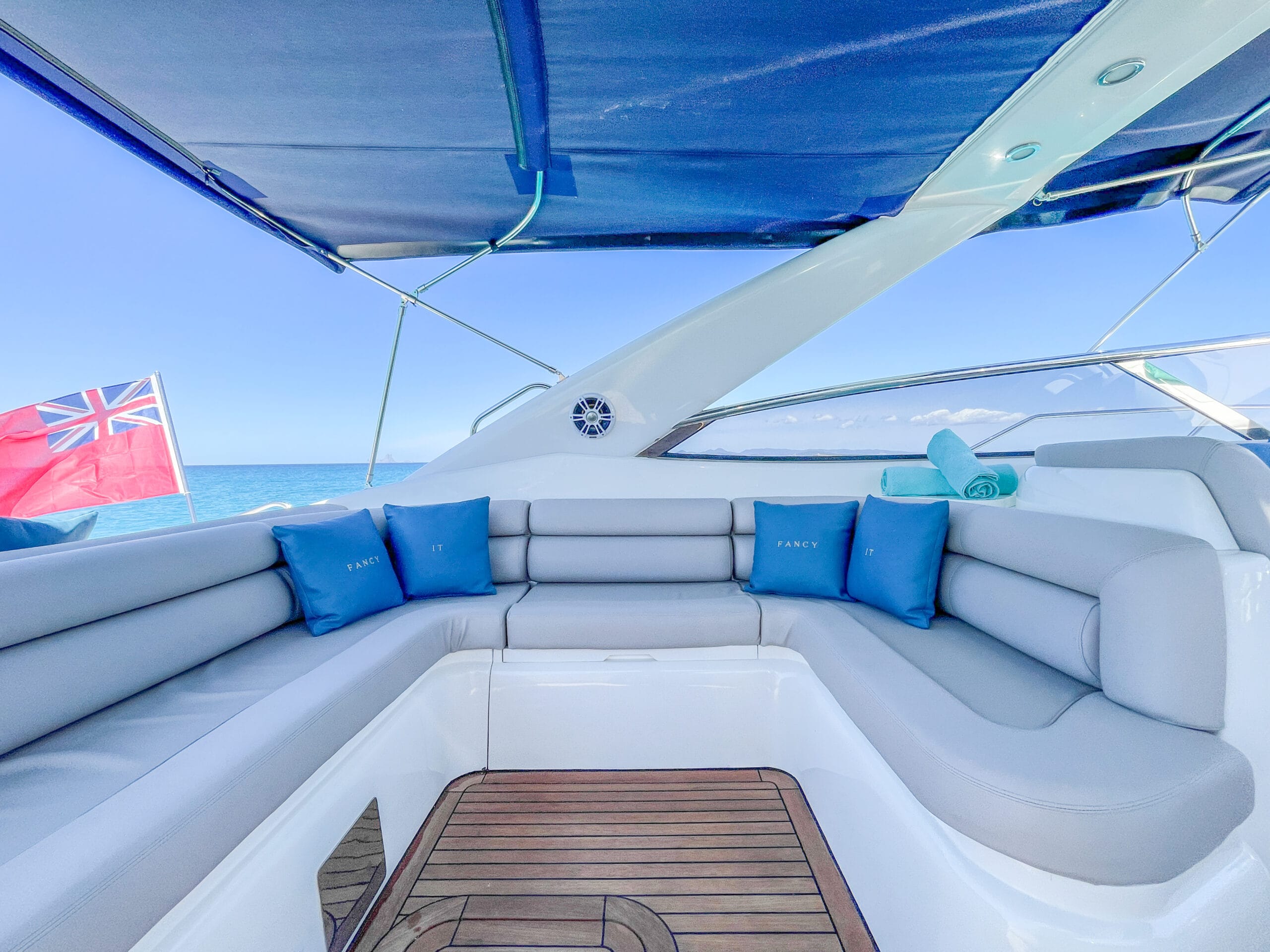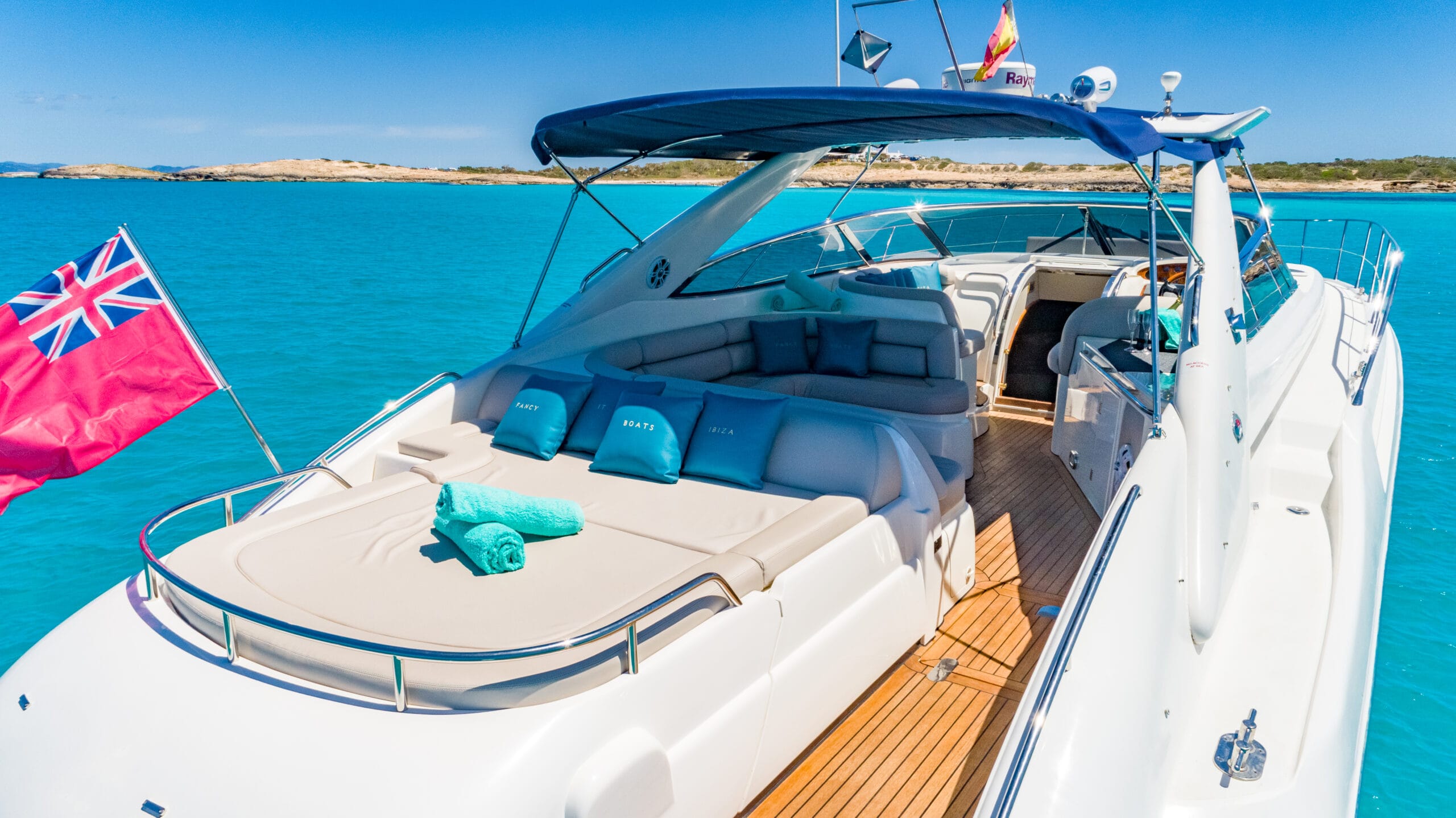 Powerful, elegant, and freshly refitted, Fancy It features twin 800HP engines, three cabins, and a spacious cockpit with shaded seating and dining. Large sunbeds at both the bow and stern, an easy-access swim platform, and a premium sound system make it the perfect Ibiza day charter.