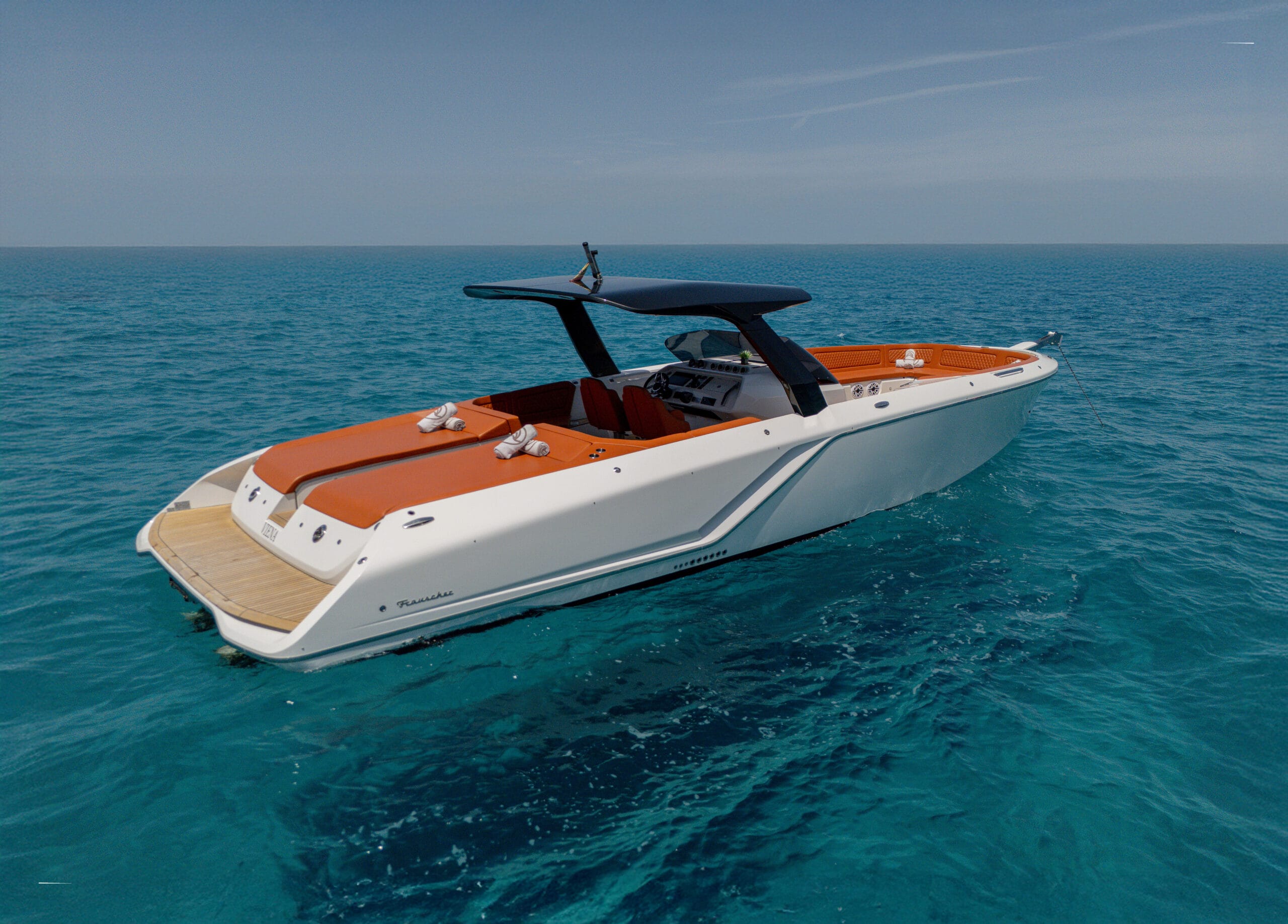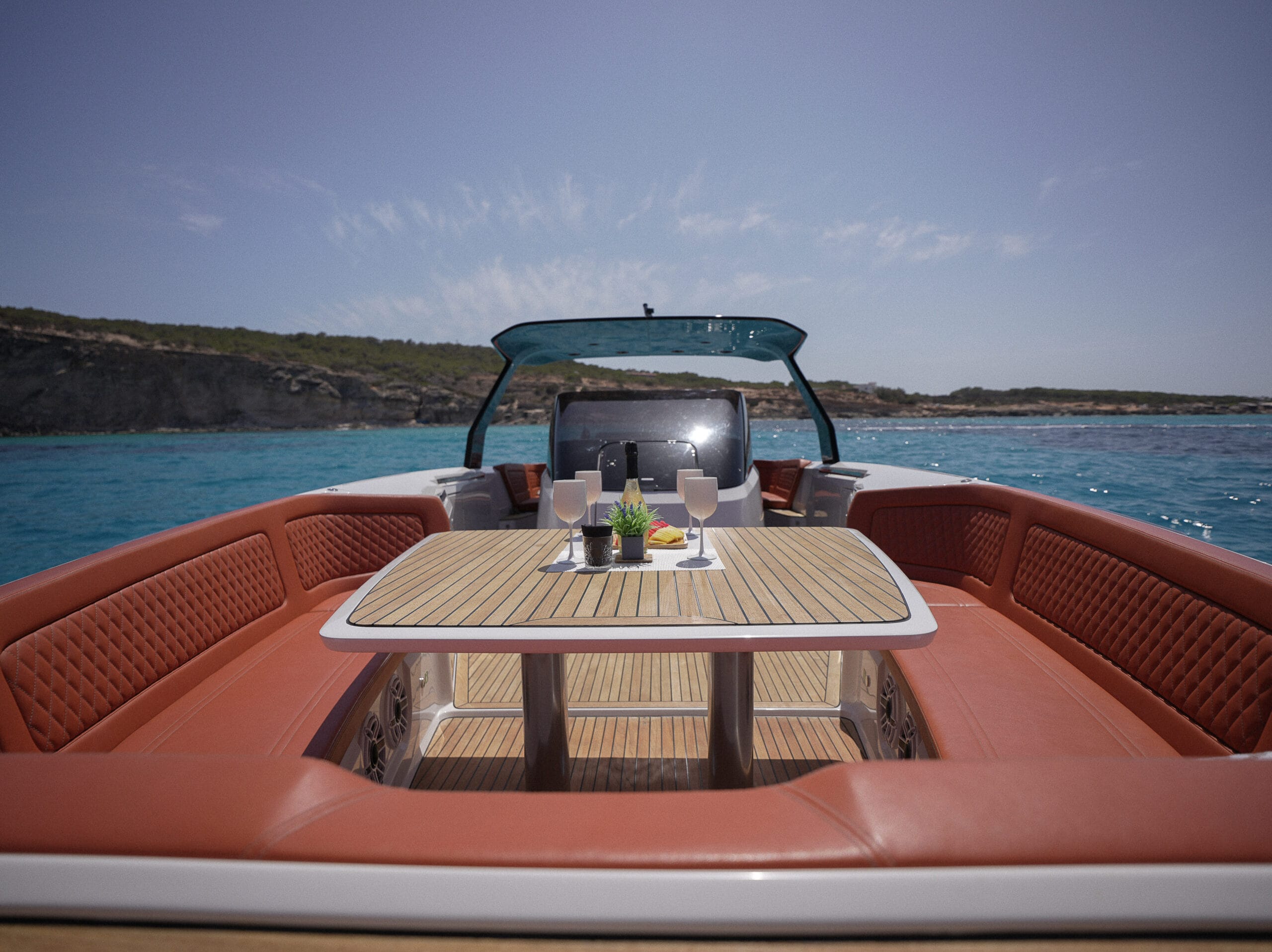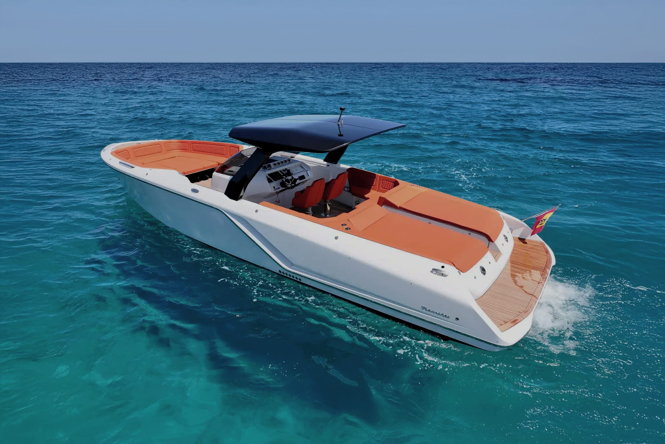 Frauscher — stylish, sporty, and unmistakably premium. This modern day boat delivers crisp performance, sleek design, and effortless Ibiza cool.