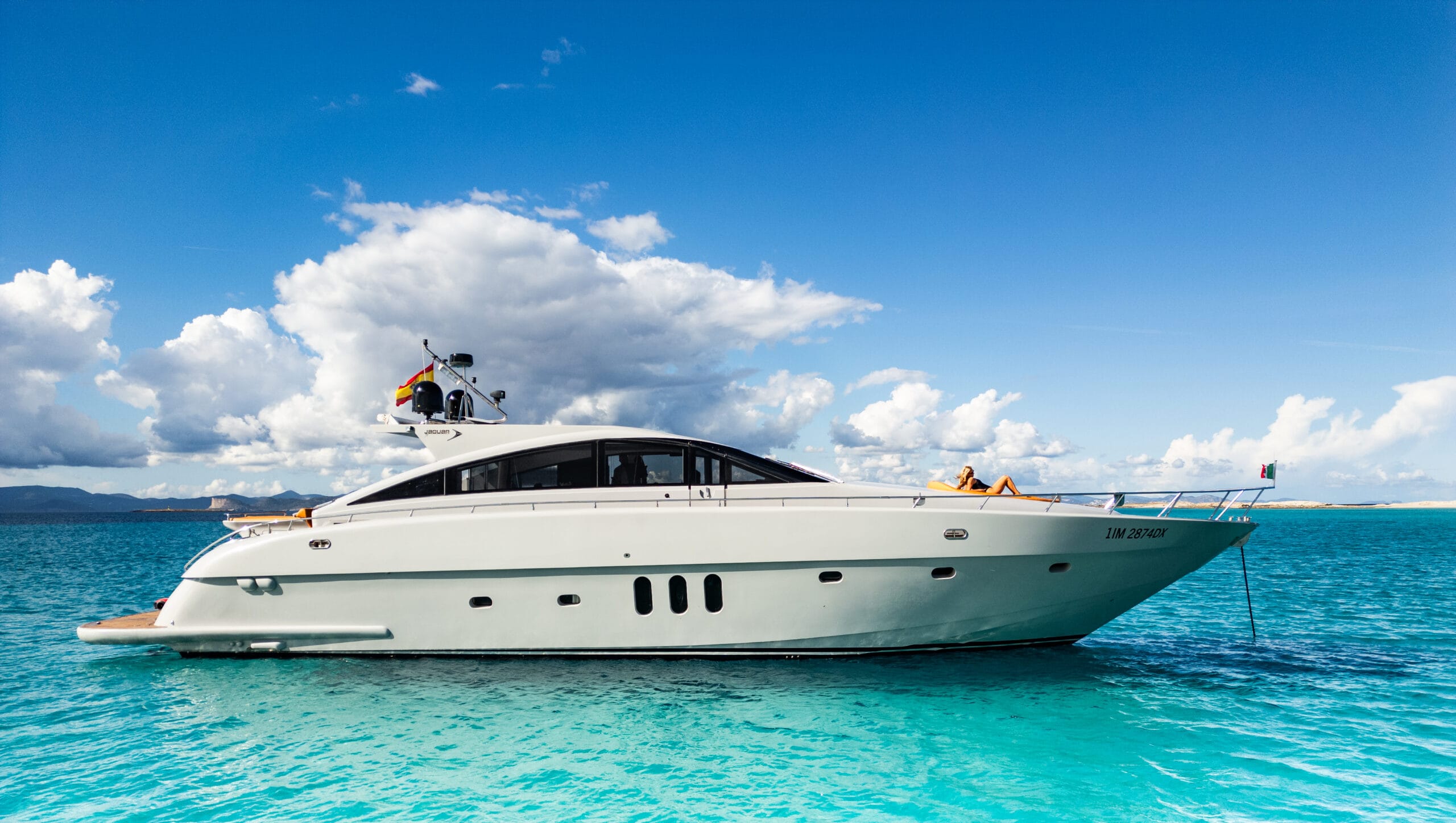 The Jaguar 72 in Ibiza combines classic luxury with spacious sun decks and a sleek 23-metre profile on the Balearic Sea. Ideal for stylish days on the water, with generous lounge areas and smooth cruising for up to 12 guests.