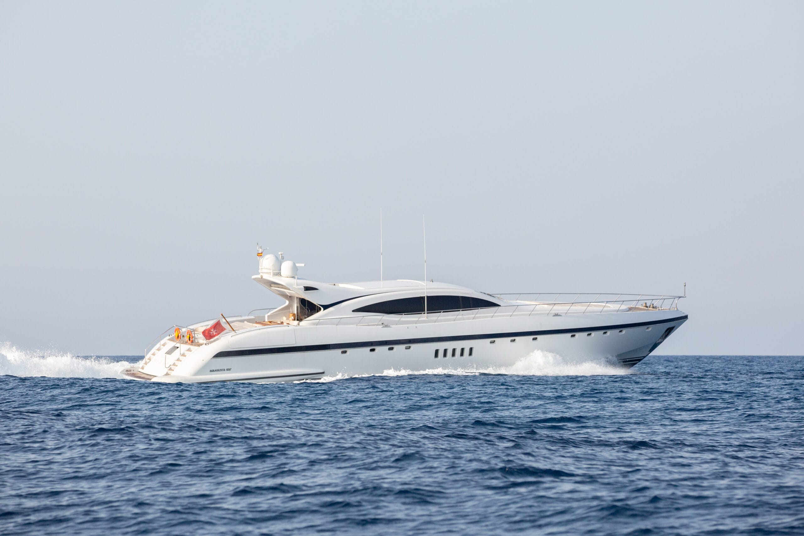 The Nomad Mangusta 108 is a striking open yacht combining powerful performance with luxurious living spaces, designed for fast, stylish cruising with exceptional comfort.