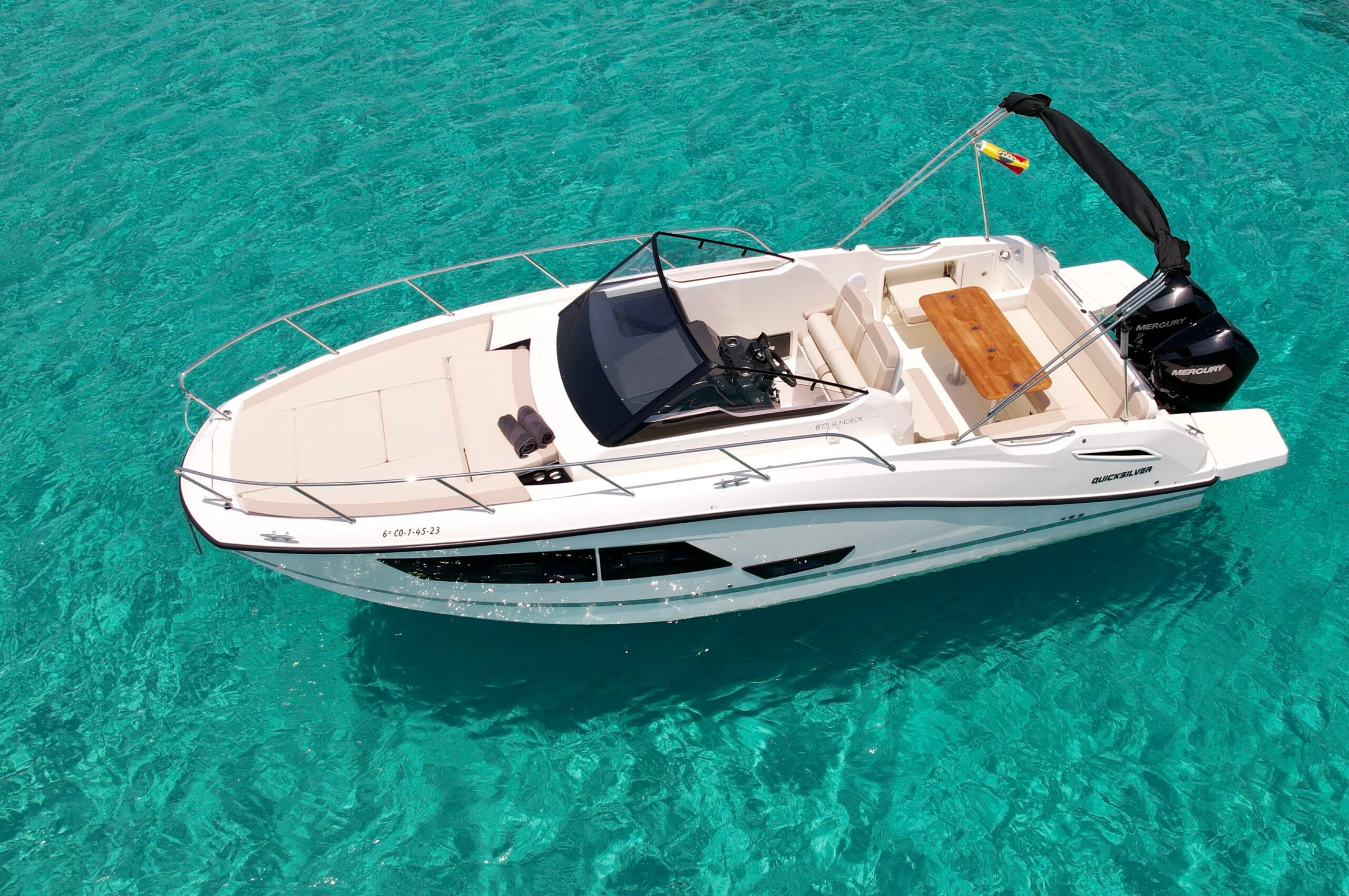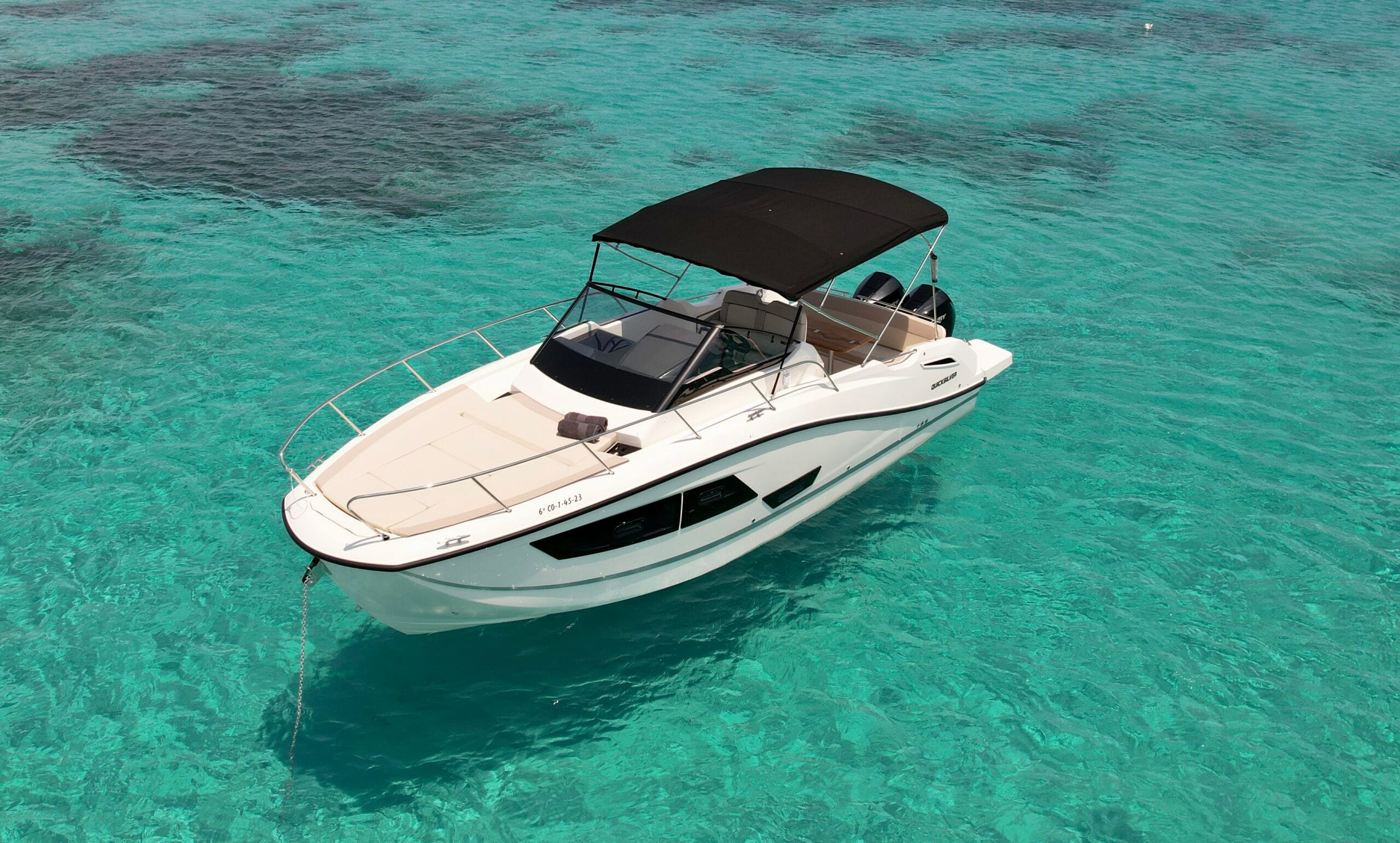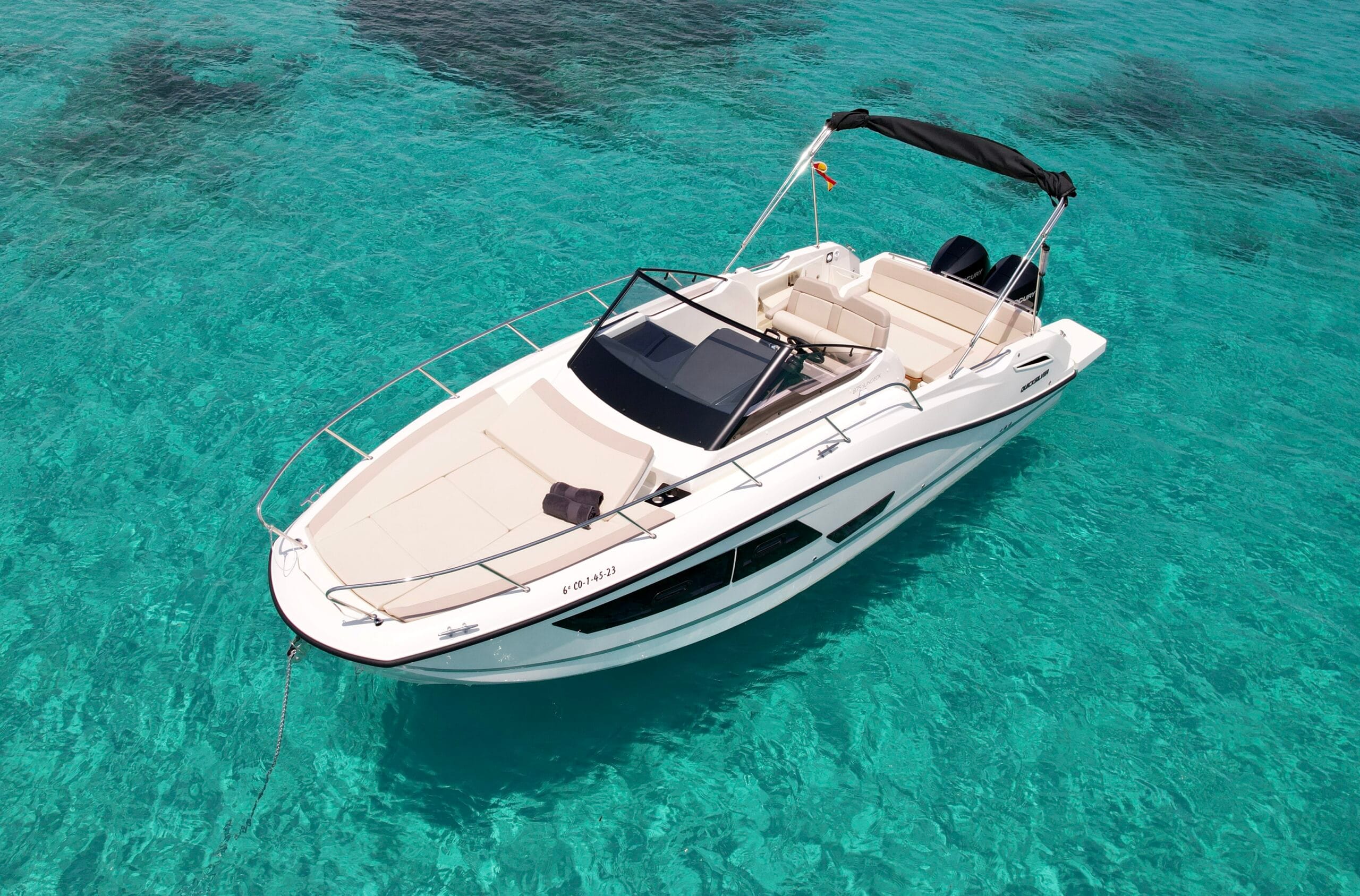Enjoy an easygoing day at sea with the Quicksilver 875. Stable, practical, and perfect for coastal cruising, it offers smooth handling and relaxed comfort for exploring Ibiza’s best spots. Step aboard and make the island yours.