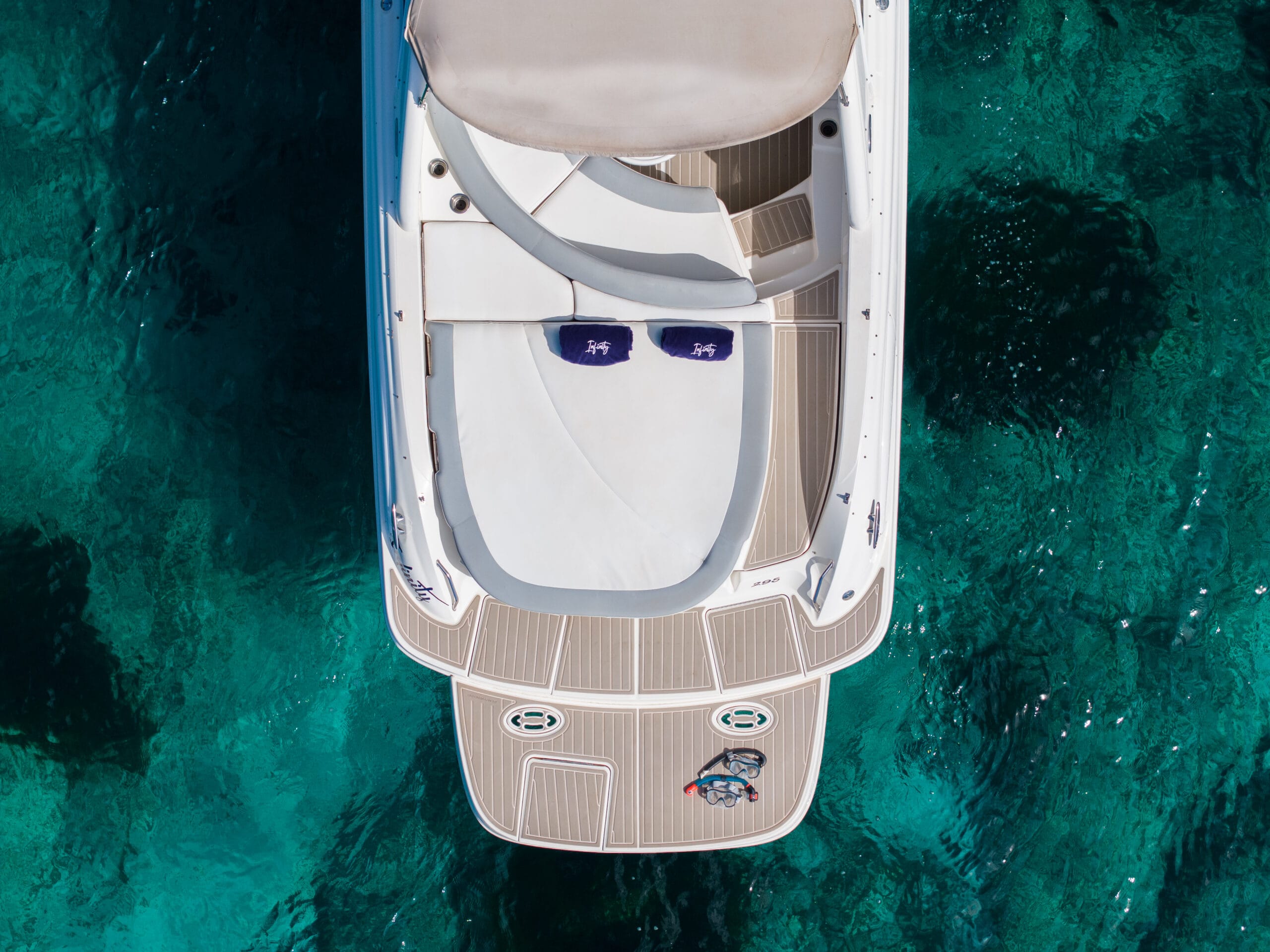 The Sea Ray 295 in Ibiza offers sporty performance, spacious seating, and effortless cruising around the Balearic coast. Perfect for relaxed days on the water with friends, combining comfort, speed, and classic American styling.